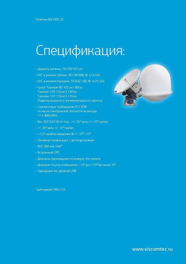 Специалисты компании «VisCom» разработали и успешно запустили в производство целую линейку оборудования для спутниковой связи в движении. Мобильные VSAT антенны в полной комплектации позволяют оснастить любое транспортное средство — автомобиль, судно любого класса и назначения,железнодорожный вагон или мобильный офис комплексно всеми видами связи.