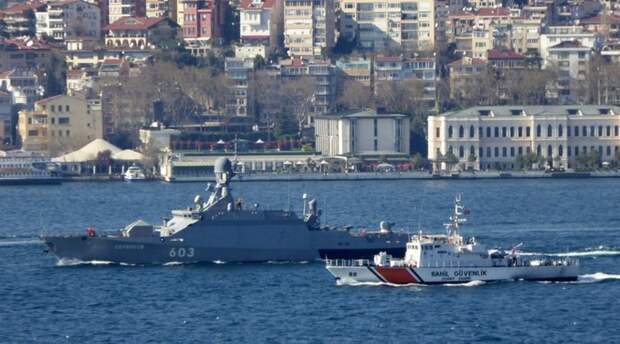 Сегодня малый ракетный корабль Черноморского флота «Серпухов» и большой десантный корабль Северного флота «Александр Отраковский» прошли пролив Босфор, направляясь в Средиземное море. МРК «Серпухов» вышел из Севастополя вчера, он сменит однотипный МРК «Зелёный Дол», который ушёл на свою первую боевую службу в Средиземное море 13 февраля.